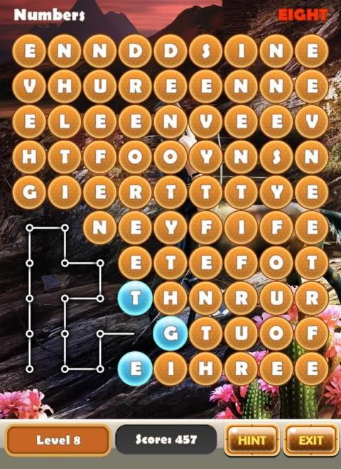 Найти путь через буквы, создавая слова данной темы. Разблокировать прекрасные 3D фоновые изображения, как вы прогресса.
