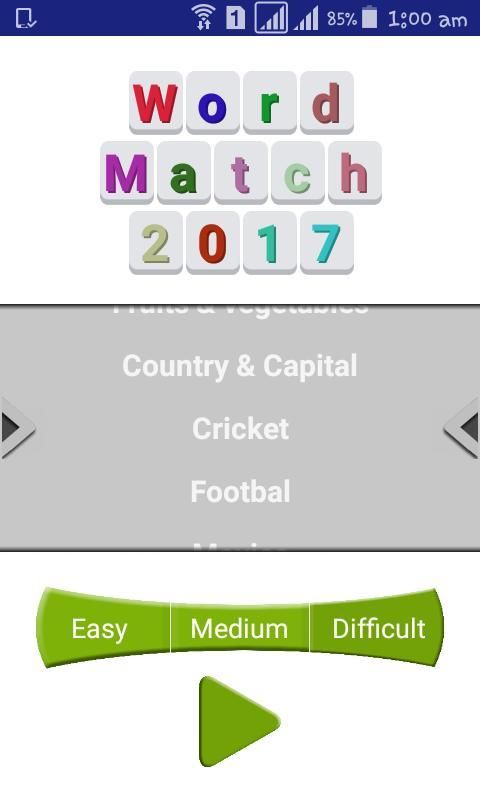 Так вот это наше приложение, и вы будете поражены с этим приложением Wordmatching. Найти более 6 категории Из основных (овощи, фрукты животных имя) своим любимым видом спорта (крикет, футбол) и из неограниченного словаря, который мы планируем ввести более 5000 слов словаря в будущих updates.This wordsearching приложение принесет вам максимальную волнение с его звуками и темой.