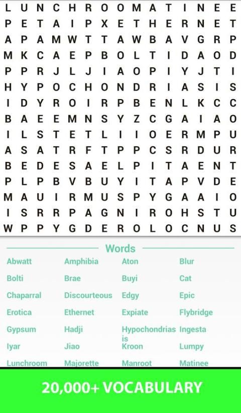 Увеличьте свой словарный запас и получать удовольствие, делая это с этой захватывающей игре слово для поиска.