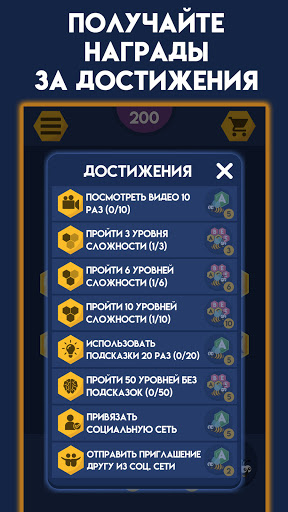 Всего будет доступно 600 уровней, 13 типов сложности. В начальном окне можно отследить игровой прогресс и узнать, какие сложные квесты ждут вас впереди. Самый простой уровень состоит из 4-х букв, а самый сложный уже из 40 букв. Найди все слова, загаданные в уровнях развивающей игры.