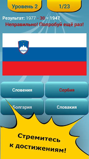 - 23 флага государств на каждом уровне (всего нужно угадать 230 флагов мировых держав!).