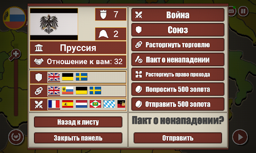 Также в игре есть дипломатия, дипломатия позволит вам заключать с другими странами союзы, торговые договора, обмениваться золотом, и многое другое.