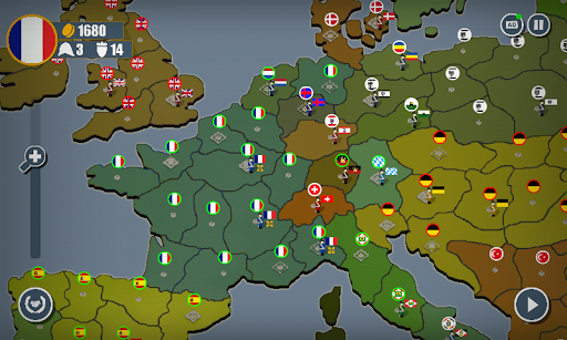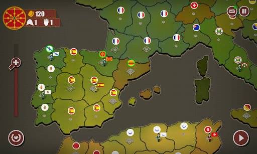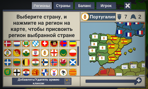 В игре на выбор есть 56 стран, в начале игры вы выбираете 1 или несколько стран, и играя за нее вы должны завоевать половину карты.