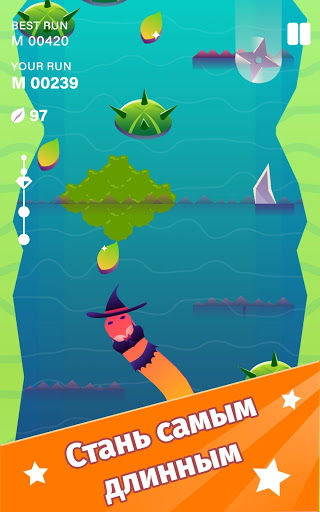 Преодолевай опасные препятствия в различных погодных условиях, берегись ловушек, не утони и береги свой хвост! Вырасти в длинного червяка поедая листья, некоторые из которых дадут тебе защиту и бонусы.