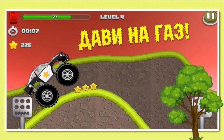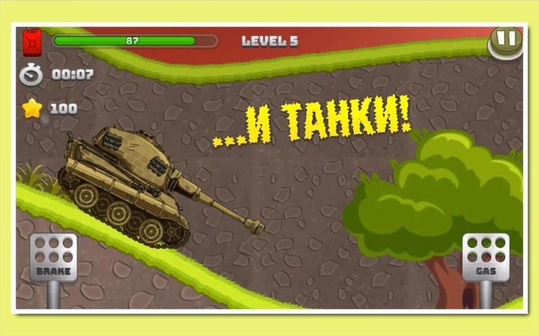 Погрузись в атмосферу безумного драйва и немыслимых трюков. Копи монеты и открывай новые тачки! А их тут предостаточно — полицейский бигфут, седан, пикап 4х4, хиппи мобиль, мотоциклы и даже, мать его, танки!