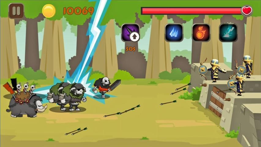В бою, вы можете купить больше лучников (также стоять на вершине башни) для борьбы и стрельбы более мощным. Используя монету, чтобы купить новый лучник на вершине башни. Вы можете решить, обновить лучник или купить новый лучник, зависит от вашей лучшей стратегией.