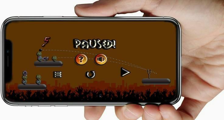 Игра должна сбить Зомби, использующий рогатку и шары.