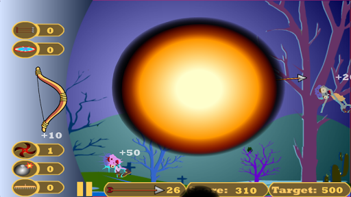 Collect all power ups by shooting them with arrow. You can avail ‘Blade’, ‘Chakra’, ‘Bhirki’, ‘shower of arrows’ and ‘Bomb’ as power ups.