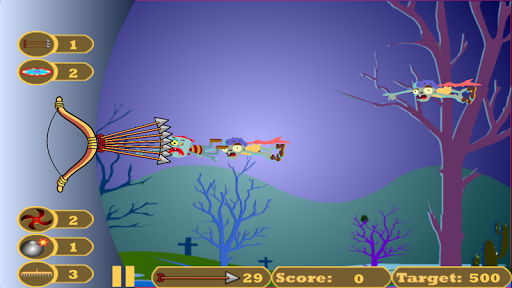 The game play is to shoot zombies with bow and arrow and make a great high score.