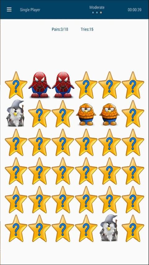 if you select Player1 or Player 2 is required to tap the card (super heroes or animals) and need to memorize what is behind it in order to match its couple.