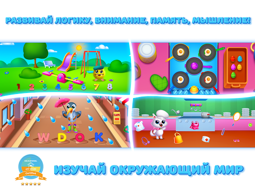 Эта веселая и развивающая игра включает в себя 4 тематические игры и 44 забавных уровня: