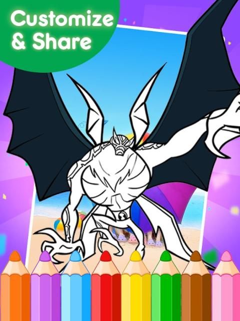 Книжка-раскраска Бен 10 чужеродных для детей это просто игра приложение, пусть ваши дети узнают об искусстве и как рисовать Бен 10 чужеродных персонажей аниме мультфильмов легко.