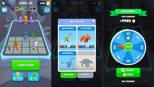 Grow your dinosaurs and warriors from simple soldiers and velociraptors to terrific monsters when you merge them. Use your finger to draw the right combination and evolve your monsters.