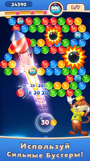 Стреляй и лопни все пузырьки, пробей свой путь к 3 звездам. Используй сильнейшие навыки, открывай еще больше веселых уровней, собирай особые ящики, наполненные монетами и невероятными бустерами!