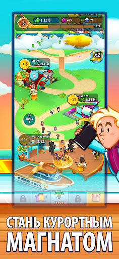 Мечтаешь обзавестись собственным райским уголком? Всегда хотел попробовать себя в роли курортного магната? Или просто не хватает праздника в жизни? Качай Vacation Tycoon – обалденный курортный айдлер!