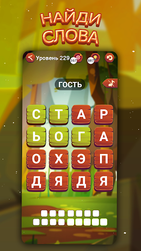 ✔️Цель игры: найти слова, загаданные на уровне. За бонусные слова начисляются дополнительные монеты.