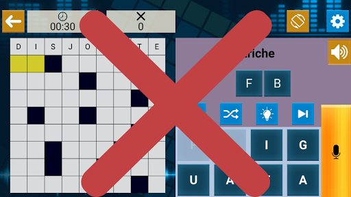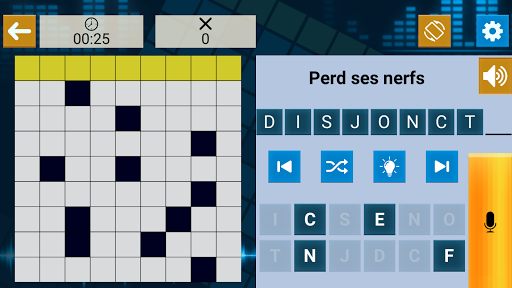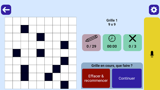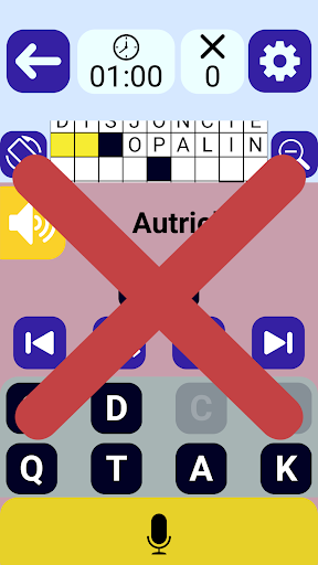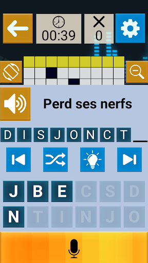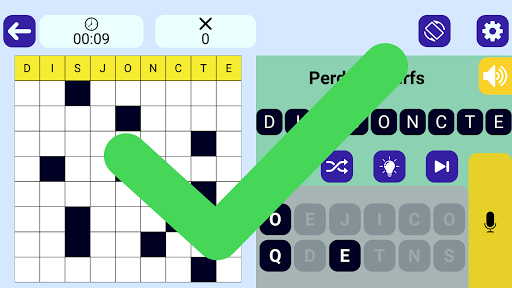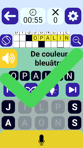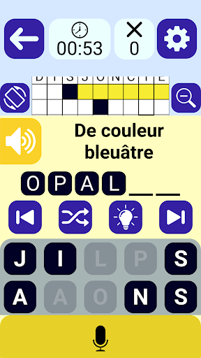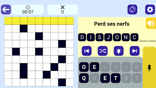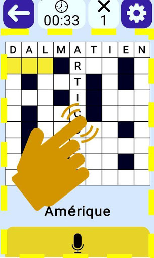Play Crossword, просто смешивая прикосновение и вокал по вашему удобству, особенно подходящим для нарушения визуализации: размер символов (двойная стрелка) или графический (стандартный или упрощенный)