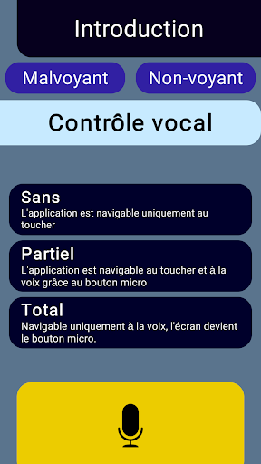 Я Слушаю - это кроссворд для всех, игривых и оригинальных, воспроизводимых к прикосновению и голосу. Он содержит большие символы и адаптированные контрасты. Эта игра полностью доступна для злых огней и не ориентирована. Он играется на французском и английском языках. Он содержит простые до умеренные затрудненные сетки, чтобы предложить столько моментов веселого и информативного отражения. Это скрещенное словом игре, адаптированную к визуально ослабленным и не указывающим, что позволяет работать свою память, имея удовольствие от уникальной специфики, которая является возможность воспроизведения всего или частично с голосом: