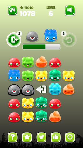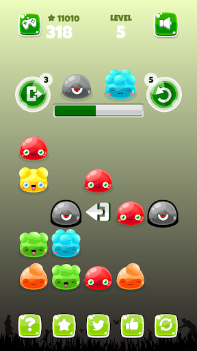 Проведите, чтобы переместить желе и объединить их, чтобы создать пузырьки головы. но следите за блоками, они не будут двигаться, поэтому вы должны их уничтожить.