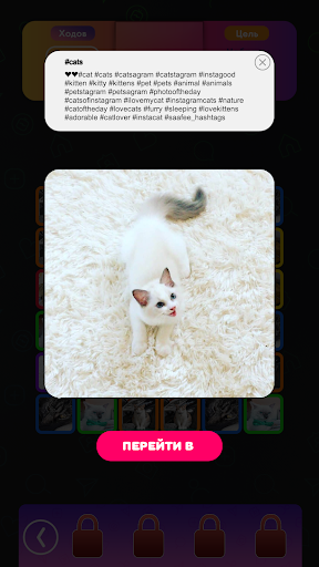Наше приложение взаимодействует с фотографиями из социальной сети и превращает их в игру с интересным геймплеем. Вы можете подключить свой аккаунт, играть с фотографиями друзей или найти их по хештегу!