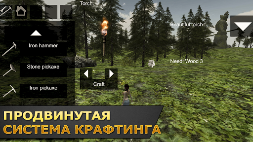 ► Сделайте себе топор, защищайтесь, рубите деревья и собирайте камни для строительства дома, лагеря.