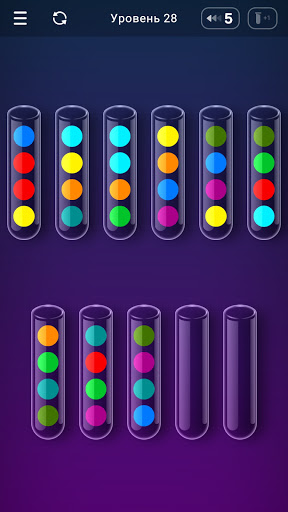 Ball Sort Puzzle - веселая и развивающая игра для тренировки вашего мозга! Сортируйте цветные шарики в колбах, пока все шарики с одинаковым цветом не останутся в одной колбе.