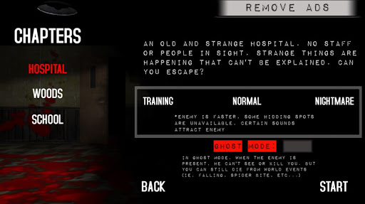 Больница - первая и длинная глава, которую у вас есть!С темной и страшной атмосферой, вы должны охотиться на подсказки и попытаться покинуть свой кошмар.