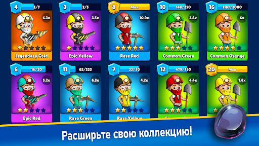 Исследуйте десятки различных шахт и расширяйте свое королевство! Отправляйте своих шахтеров в самые глубины за самыми загадочными шахтами!