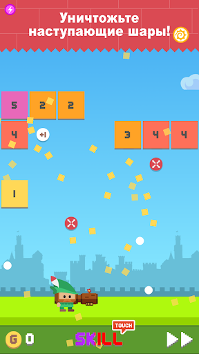Сломайте наступающие блоки, точно рассчитав угол выстрела.
