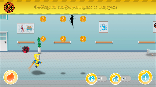 Беги и прыгай, стреляй по вирусу, исцеляй зараженных, собирай полезную информацию и набирай очки!