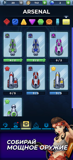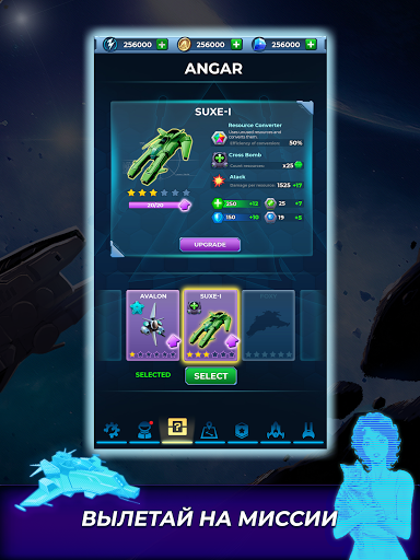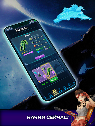 Отправляйся на свою первую миссию, уничтожай врагов и расширяй свой ангар космических кораблей.