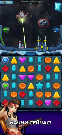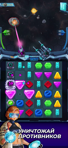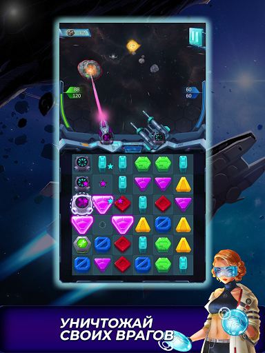 ~ Космические битвы и баталии - приготовься, тебе достался вид из каюты капитана, сражайся с противниками в открытом космосе при помощи мощных комбинаций по типу лучших механик матч 3.
