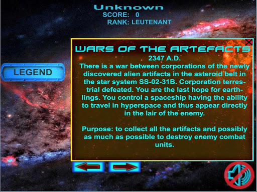 Вы управляете космическим кораблем, который забрасывают в разные астероидные сектора противника за поиском и сбором артефактов. Выполняйте миссии, чтобы ваша фракция землян победила в этой войне за артефакты.