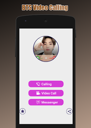 BTS Поддельный видео-звонок с Джиминым и Таээюнсом, это приложение является поддельным вызовом из Цзимина и Таэхёна, те талантливые могут танцевать с Джимином и Таэхингом в игру BTS Fake Video Call Game, поддельный звонок от BTS-приложения сделает вас петь с Джимином и Taehyung в живом поддельном видеозвонке Ваша любимая песня BTS, и Джимин является самым смешным участником BTS, чтобы вы могли легко сделать дружбу с собой. Общайтесь с BTS и со своими любимыми корейскими поп-звездами, поэтому фальшивый видеозвонок от BTS - это простое и простое приложение с простым интерфейсом и плавным управлением.