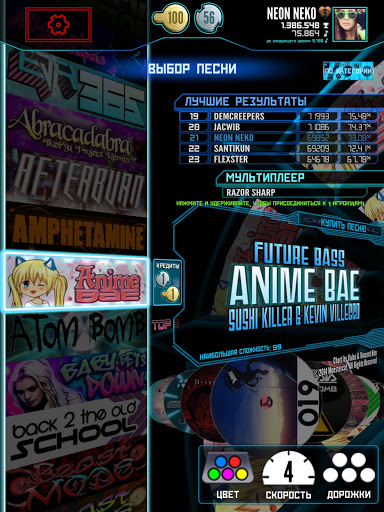 Так же, как и в оригинальной аркадной музыкальной игре, наличие разных уровней сложности для каждой песни позволяет играть и соревноваться игрокам всех мастей. Бесплатный предпросмотр песен и ритмы к новым музыкальным композициям каждую неделю. Придерживайтесь ритма и получайте за это очки, а также зарабатывайте значки, разблокируйте новые песни и выигрывайте жетоны для бесплатных игр. Мобильные и аркадные игры получают обновления песен каждые 2 недели или чаще, что гарантирует наличие свежей музыки и поддерживает соревновательный дух! Зайдите и узнайте, почему Neon FM™ является лучшей музыкальной игрой десятилетия!