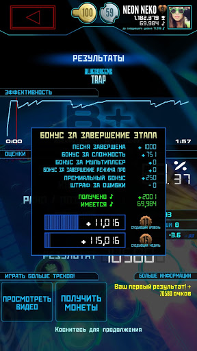• Зарабатывайте бесплатные проигрывания песен при получении каждого нового уровня