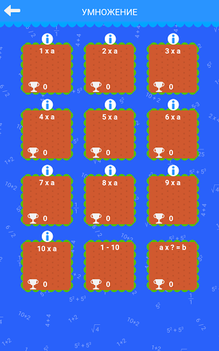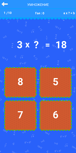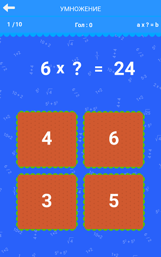 Упражнения на умножение: 1xa, 2xa, 3xa, 4xa, 5xa, 6xa, 7xa, 8xa, 9xa, 10xa, 1-10, ax?=b