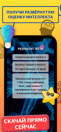 Приложение максимально эффективно проверяет возможности вашей кратковременной памяти и, основываясь на полученных данных, выдает возраст мозга. Многие будут очень удивлены полученным результатом, а кто-то и расстроен.