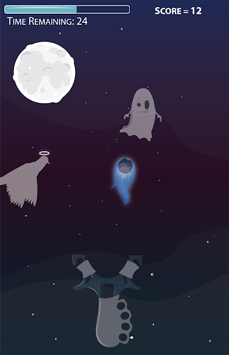 Shoot the bats, ghosts and monsters with different slingshots, on various stages. On the initial stage of the game, you have 45 seconds to kill as many bats as you can. Each time you shoot a bat you get extra seconds with maximum of 60 seconds to achieve per game but if you miss the shot you loose 5 seconds. Avoid hitting pigeons and achieve high scores to unlock next stage of the game.