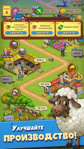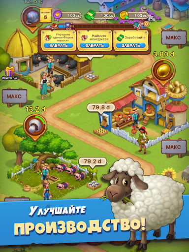 - Покупайте и разводите новых животных, чтобы ферма производила еще больше прибыльных товаров