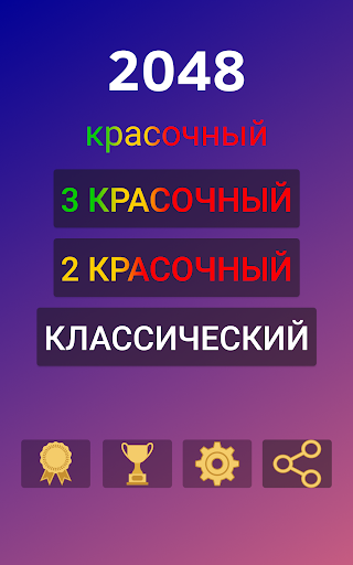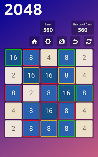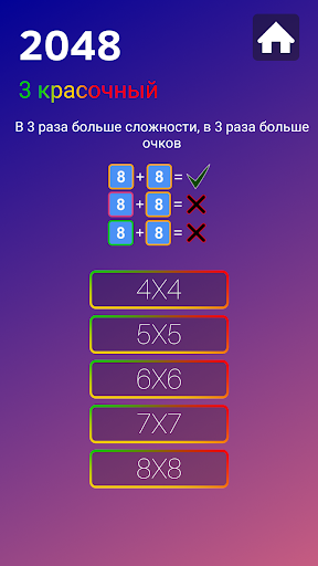 В игре 2048 Colour предлагается 3 варианта Color, 2 Colorful и Classic с пятью уровнями сложности, включая 4x4, 5x5, 6x6, 7x7 и 8x8.