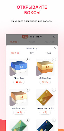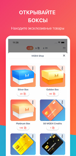Откройте 4 типа виртуальных боксов, один лучше другого. Находите предметы с самым редким MOD level, пополняйте ваш виртуальный гардероб и узнавайте, посчастливилось ли вам выиграть лучшие предметы, которые вы можете найти на MOD4!
