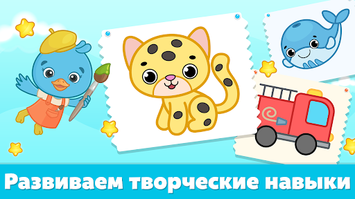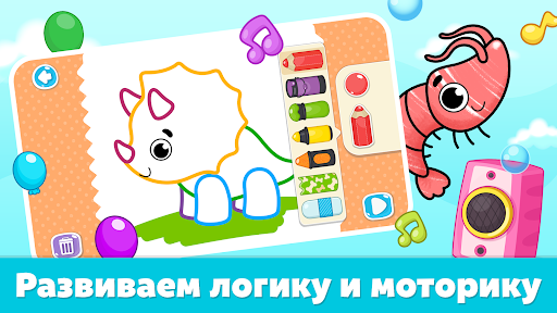 Дети любят рисовать и раскрашивать, и эта игра для рисования является одним из лучших приложений для раскрашивания для малышей. Ваш ребенок научится шаг за шагом рисовать разные картинки, обводя пунктирные линии и затем раскрашивая их с помощью нашей раскраски для детей.