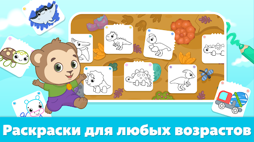 - Замечательные игры для детей со страницами для рисования на разные темы, включая животные, динозавры, машины, океан и многое другое.