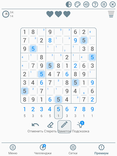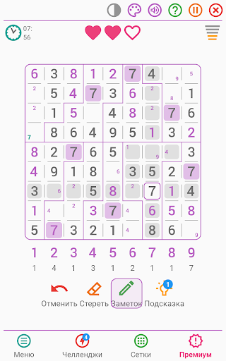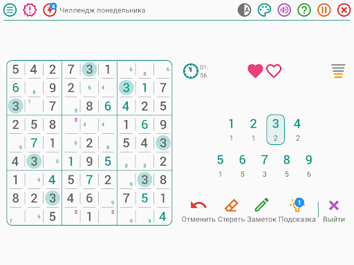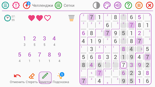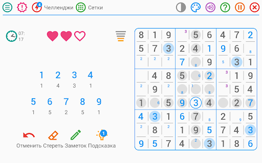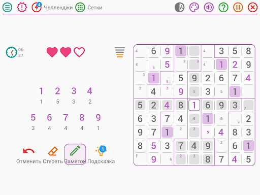 Расслабьтесь с нашей замечательной, классической, бесплатной и русской игрой судоку!