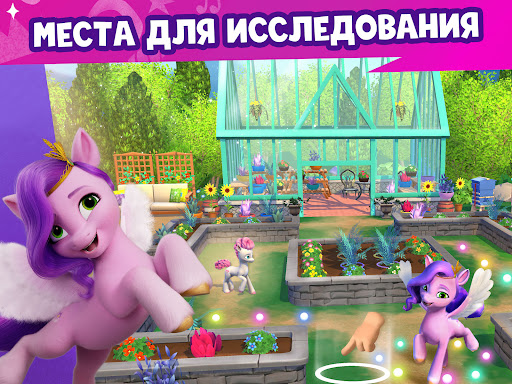 Играйте в забавные мини-игры, выполняйте задачи или стройте и украшайте Хрустальный замок! Пусть в мире My Little Pony ярко сверкают ваша доброта и уверенность!