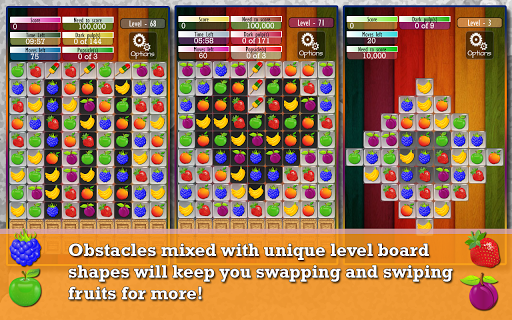 Match Three Game Game и постепенно увеличивается в целях, как добавлены препятствия, как добавлены препятствия, и на уровне становятся более сложные.