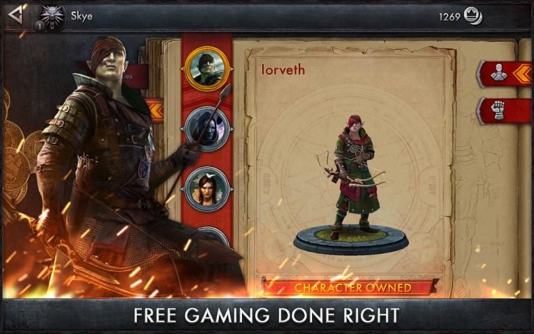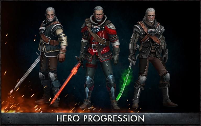- 9 unique heroes at launch: Geralt of Rivia, Letho of Gulet, Philippa Eilhart, Zoltan Chivay, Eithné of Brokilon, The Operator, Golem, Saskia of Aedirn and Iorveth
