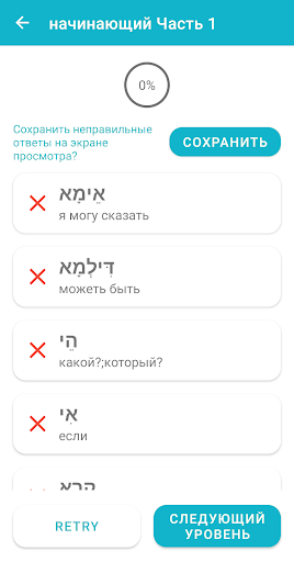- Добавлена кнопка «сохранить неправильные ответы», чтобы вы могли тренироваться на экране обзора.