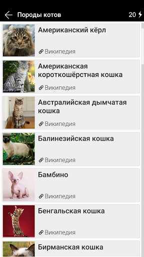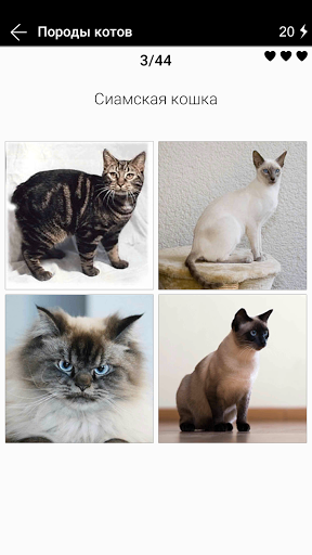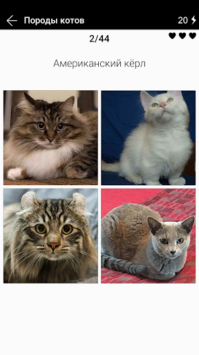 Фото викторина содержит 50 пород кошек популярных в разных странах мира.